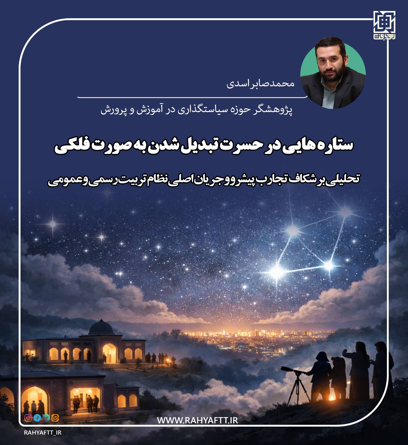 نظام تعلیم و تربیت در ایران اسلامی، میزبان ستارههای درخشانی از گروهها و مدارس و مربیان پیشرو است که به صورت پراکنده، در نبود سازوکاری برای شبکهسازی، تعامل و تعمیم تجارب، ناتوان از تشکیل یک صورت فلکی منسجم و اثرگذار در آسمان شب آموزش و پرورش کشور هستند. در نتیجه، نور این تجارب موفق، تنها محدود به حوزه نفوذ محلی خود باقی مانده و جریان اصلی تعلیم و تربیت رسمی و عمومی از تابش تحولآفرین آن کمتر بهرهمند گشته است.