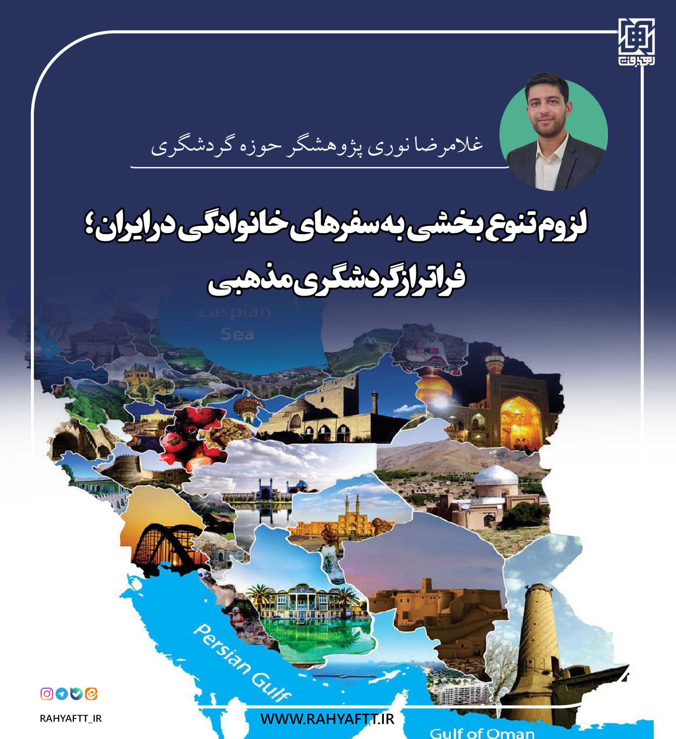 زمینه های اقلیمی، فرهنگی، اجتماعی و تاریخی ایران بستری مناسب برای تنوع‌بخشی به سفرهای خانوادگی فراهم می‌آورد. با بیش از ۲۰ هزار سایت تاریخی و طبیعی، از کویر لوت تا جنگل‌های هیرکانی، ایران تنوع اقلیمی و تاریخی بی‌نظیری دارد. با این حال، گردشگری مذهبی که ۳۸ درصد سفرهای جهانی را تشکیل می‌دهد، در جوامع اسلامی مانند ایران اغلب به زیارت محدود می‌ماند و جنبه‌های دیگر در حاشیه قرار گرفته است. تحلیل‌های علمی نشان می‌دهد که در حالی که سفرهای زیارتی هویت معنوی را تقویت می‌کنند، فقدان تنوع تجربی، شکاف‌های نسلی را در جامعه‌ای که ۸۰ درصد خانوارها در تعطیلات به سفر می‌پردازند، اما تنها نیمی از آن‌ها به مقاصد غیرمذهبی بسنده می‌کنند، تشدید می‌نماید.